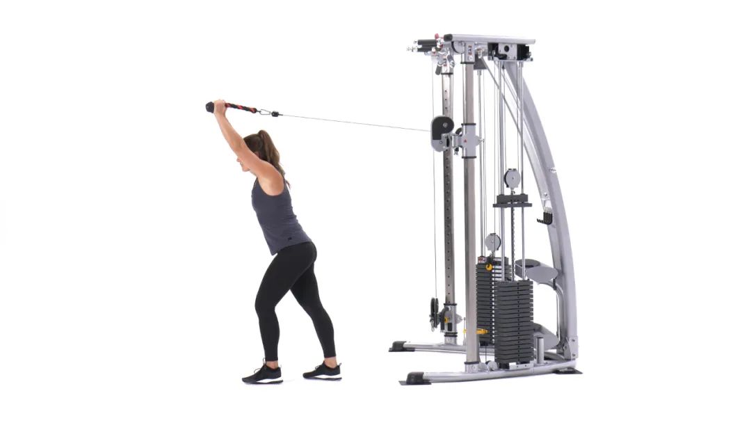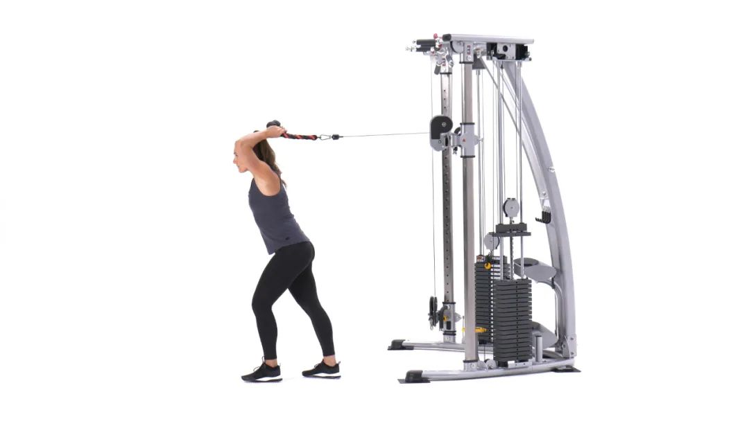 4 组,每组 20-24 次(交替进行,每侧 10-12 次,不休息) 2. 绳索下压 4 组,每组 10-12 次(休息 1 分钟) | 按顺序进行练习,动作之间不休息,组间休息 1 分钟。 |