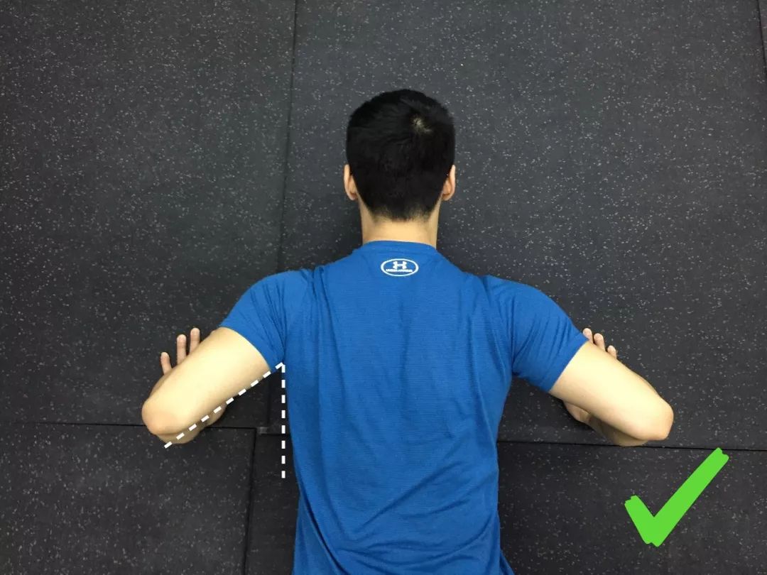 2. 肩胛骨下沉、收缩,大臂与身体靠近(夹角10~45°);