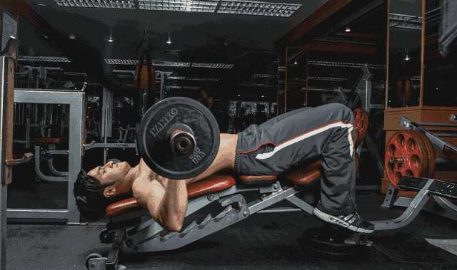 按照正确的杠铃轨道完成下斜杠铃卧推