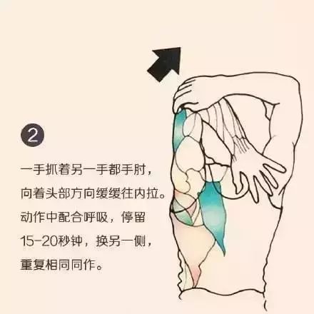 1、静态拉伸:拉伸运动中活动较多的肌肉,直到感到它完全绷紧,保持15到30秒,就可以了。静态拉伸能放松肌肉,有助于缓解身体的僵硬和疼痛感。